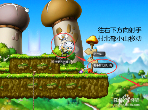 往右下偏向弓手村海说神聊部小山移动。