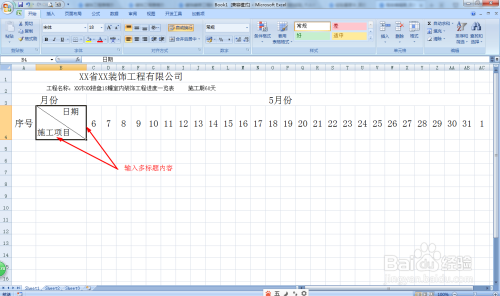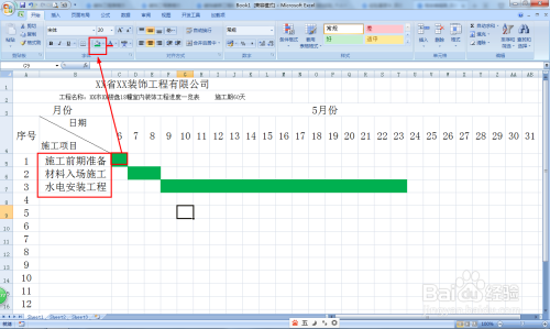 (6)输入具体施工项目及施工天数(填充绿色天数)。
