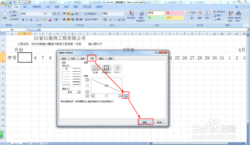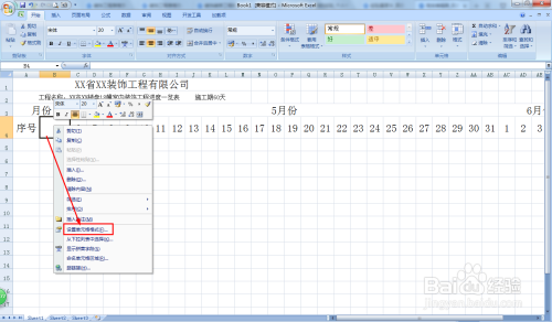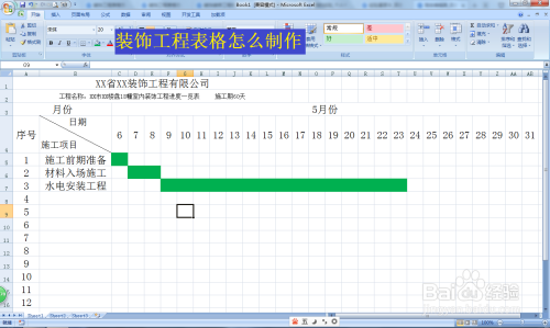 最后输入序号和项目内容——在施工日期的响应单位格设置绿色填充颜色,暗示要施工几多天。