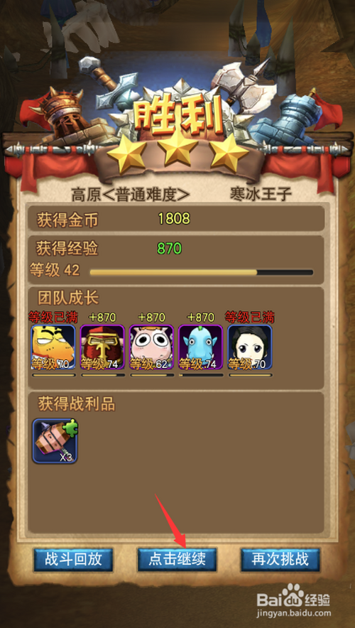 6.本关卡奖励870点经验,点击下方点击继续按钮分开副本。