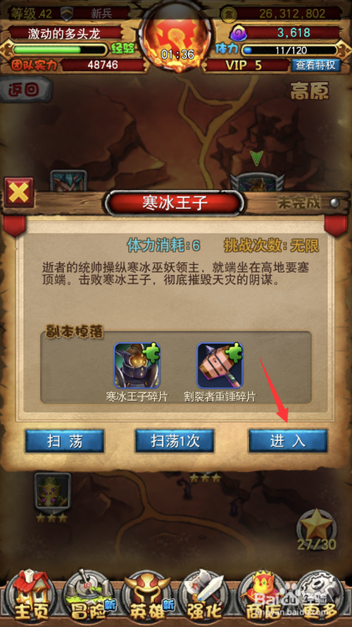 3.打开寒冰王子副本,点击进入按钮。