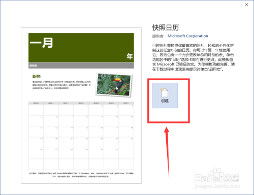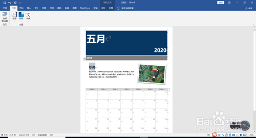 接着在Word页面就可以看到一个建立好的日历模板,本身插手喜好的图片,文字今后日历就建造好了