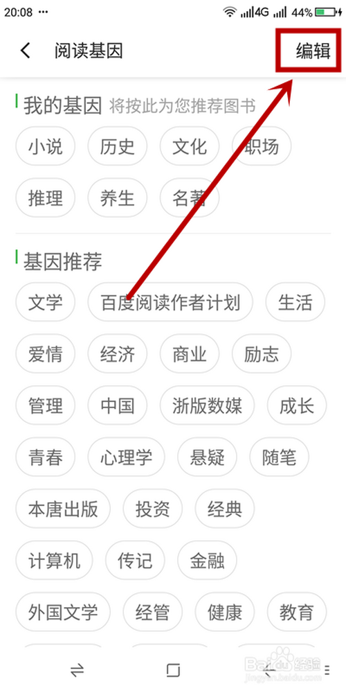 6、进入【我的阅读基因】页面,单击右上角【编纂】