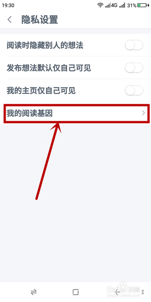 5、进入【隐私设置】页面后,选择【我的阅读基因】选项单击