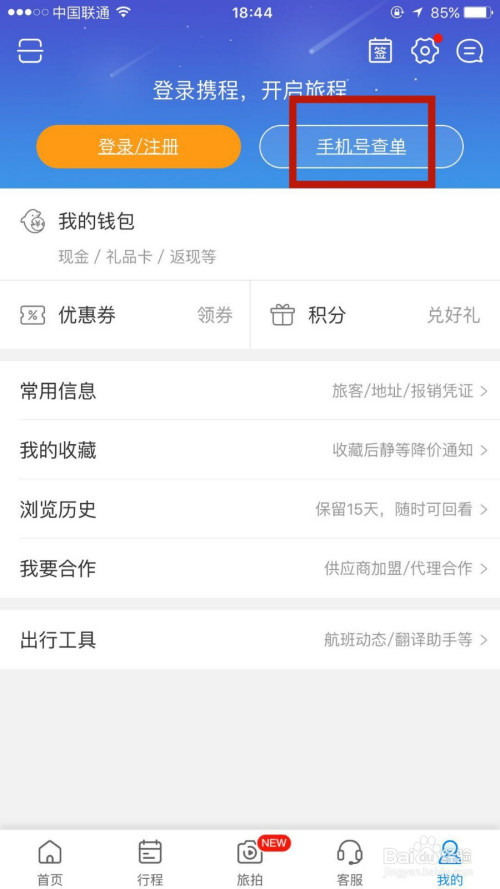 点击进入右上方的手机号查单选项。
