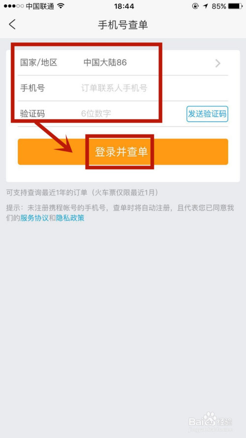 3.输入手机号验证码点击登录并查单,即可。