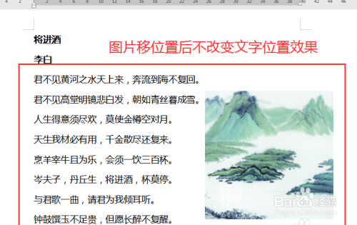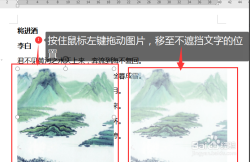 按住左键拖动图片,移至不遮挡文字的位置。如图所示。