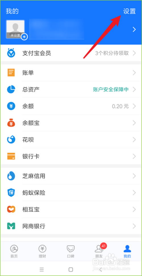 3、点击设置;