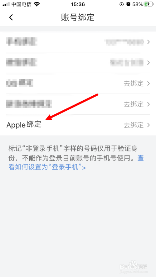 接下来在【账号绑定】的页面里,点击【Apple绑定】。