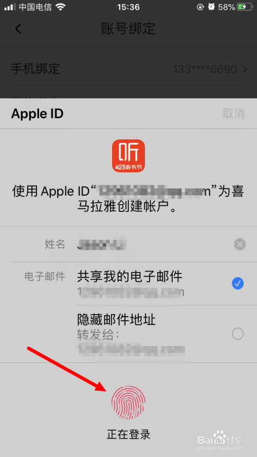 6、最后,用已验证Apple ID的手指轻按HOME键。