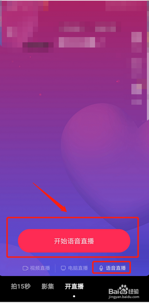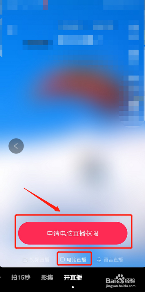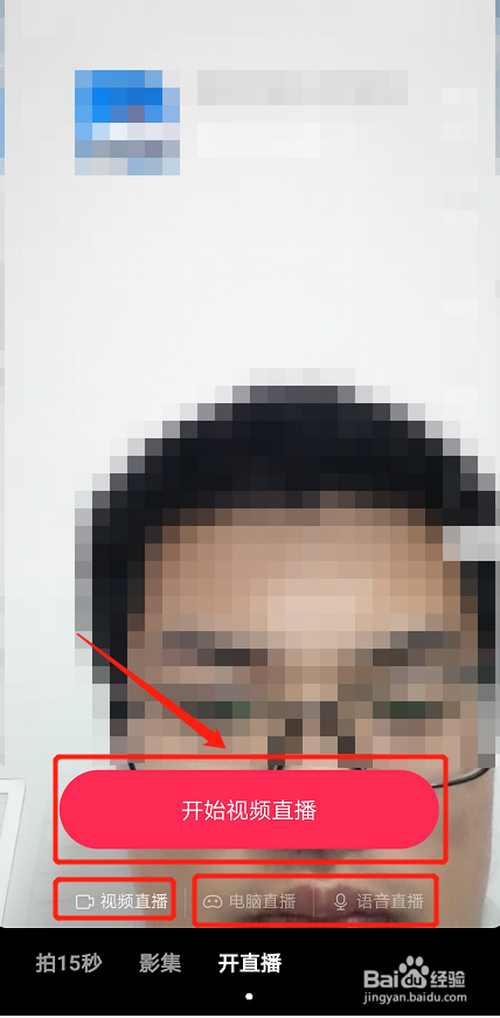 进入拍摄视频页面,点击底部右下角的”开直播“。