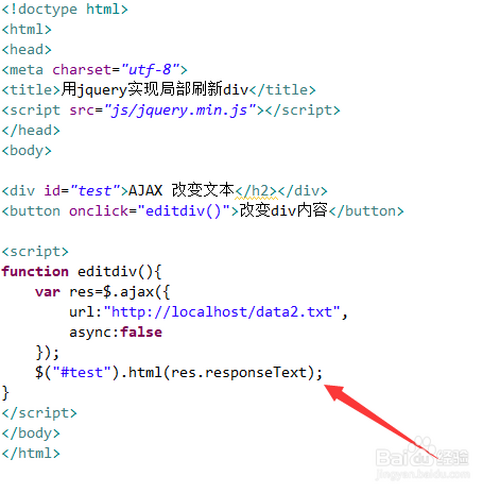 在js标签内,建立editdiv()函数,在函数内,经由过程ajax()方式从data2.txt文件获得内容,把获得的内容保留在res变量中。