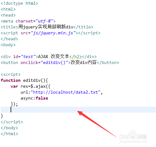 新建一个html文件,定名为test.html,用于讲解用jquery实现局部刷新div。
