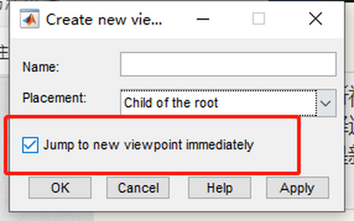 要使新视点当作为视图的当前视点,请当即选择跳转到新视点并单击OK。若是您不选择这个选项,您仍然会建立一个视点,可是您仍然会被绑定到当前的视点,而不是新的视点。