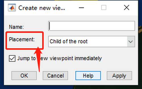指定视点的位置。将放置设置为根的子位置。这个选项使视点当作为一个静态视点。
