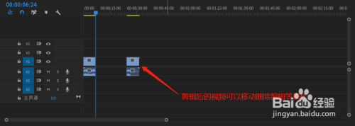 3、此时完当作视频被剪当作2段,然后按照需要移动组合拼接或删除,出产您的创作;