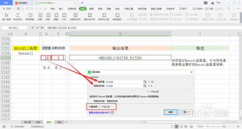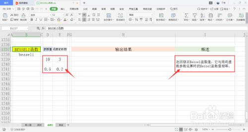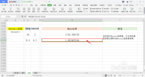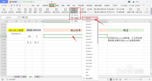 选中一个单位格用于存放输出成果,在菜单栏的公式下,打开其他函数中的统计下拉框,点击此中的BESSELI函数。