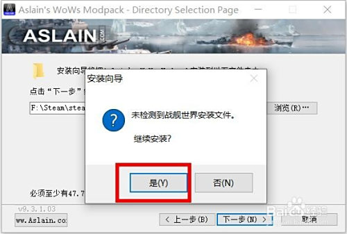 第七步,选择好安装位置之后,点击下一步继续,呈现如下图未检测的提醒,不管他,点击确定,继续。