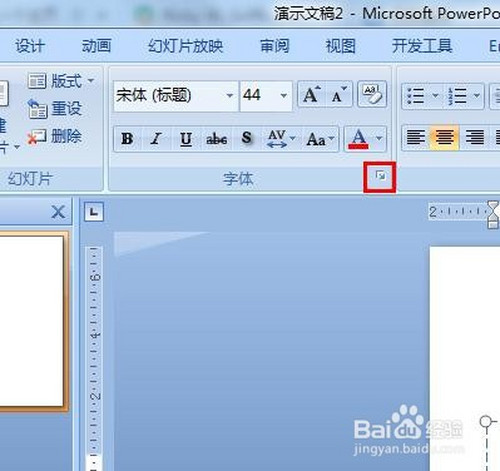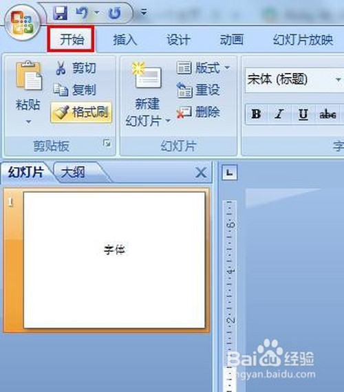 选中幻灯片上的文字,点击菜单栏上的“起头”选项。