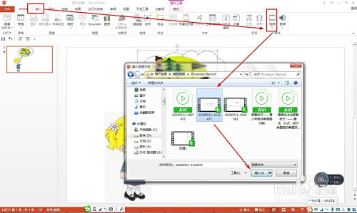 接着点击插入——视频——PC上的视频——选择一个动画视频插入到PPT中。