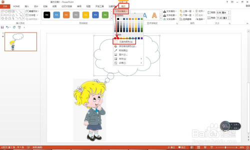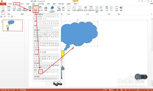 接着点击插入——外形——选择云形标注——在人物的头顶上画一朵云形图案。