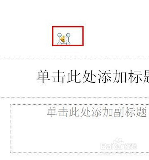 此时在幻灯片上呈现一个喇叭图标,在放映模式时,点击即可播放。