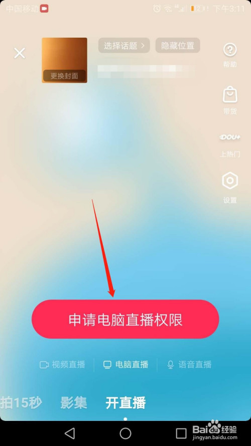 进入电脑直播页面后,点击“申请电脑直播权限”按钮。