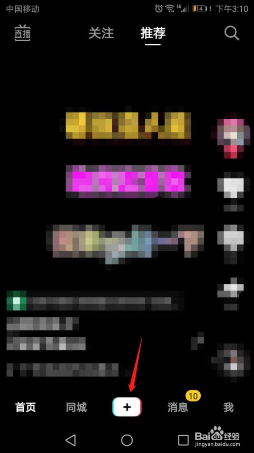 登录抖音短视频APP后,点击页面底部的加号图标。