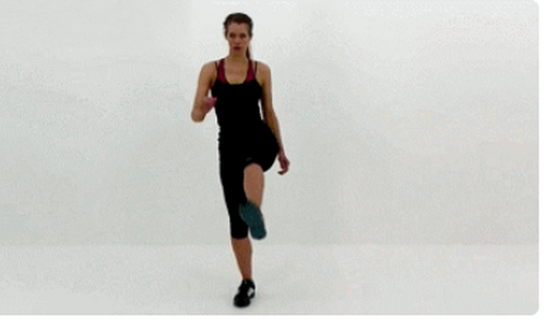 感觉累了,就隆低速度,慢跑到走步,高抬腿、前踢腿、手臂摆动;