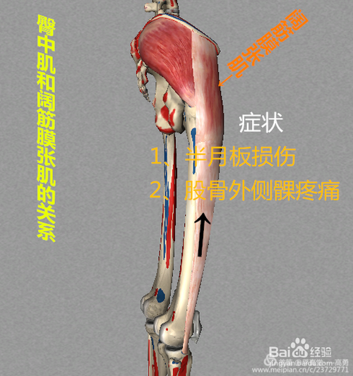 3、臀中肌无力阔筋膜张肌就会帮忙臀中肌来不变髋部,原本阔筋膜张肌出5分力就好,这样一来要出10分力短时候还好时候长了怎么办?导致阔筋膜张肌严重、痉挛,阔筋膜张肌的往下就是髂筋束因为阔筋膜张肌严重就会牵拉髂筋束而髂筋束附着在胫骨外侧髁上就会把胫骨外侧往上提这样一来导致胫骨和股骨之间的夹角发生了改变“外侧夹角变小,内侧夹角变大”这个夹角的问题我们在临床治疗病人时从病人的片子上就可以很较着的看出。外侧夹角的减小就会导致外侧半月板发生磨损“膝关节半月板毁伤痛苦悲伤”,摩拜单车现今差不多已经普及到各个城市,有心者可以看一下“女同志”骑单车膝盖夹角的转变,尤其是炎天;记住我是让您看膝盖胫骨和股骨夹角之间夹角的转变不是让您看此外处所。