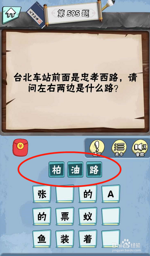 脑子急转弯达人游戏Lv6绝代奇才第595关内,提问台海说神聊车站前面是忠孝西路,摆布双方是什么路。