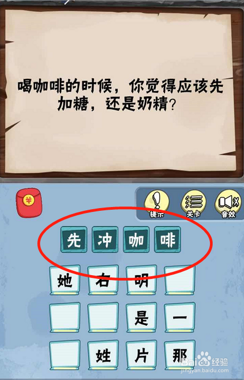 准确谜底是“先冲咖啡”,不管是要加糖,仍是加奶精,都应该在冲了咖啡之后的操作。