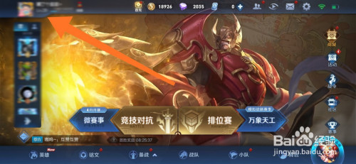 在游戏本家儿页面中,我们点击左上角的头像图标,进入和人设置页面。
