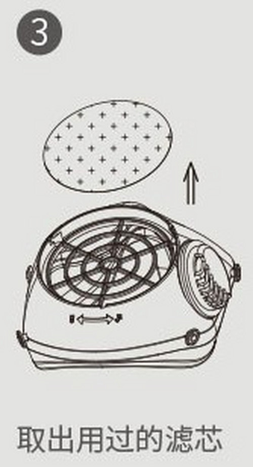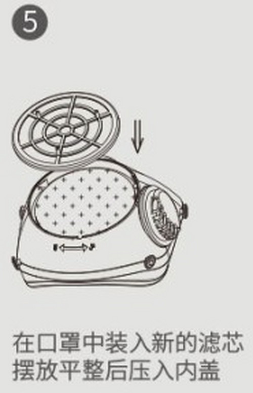 在口罩中装入新的滤芯,摆放平整后压入内盖