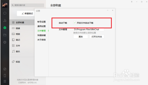 第五步勾选之后,就当作功设置电脑版微信主动下载文件了,如下图所示: