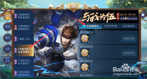第2步进入到小我勾当中后,在勾当中点击如图所示的与我为伍五五开黑的勾当,进口进入后找到55登录里,点击签到。