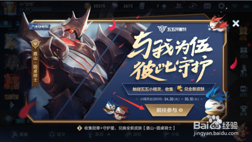 第1步我们进入到王者荣耀游戏中,可以看到当前的盾山圆桌,骑士的新皮肤只有在勾当中才能获得。