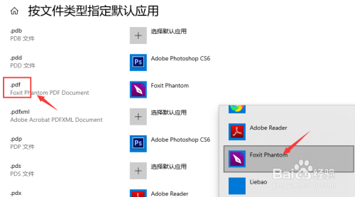 在“PDF”格局右侧点选指定默认的应用程序即可,设置完当作后,即可直接用该程序打开PDF文件了。