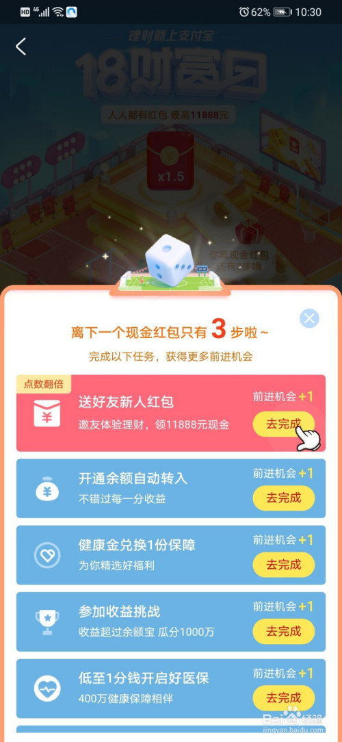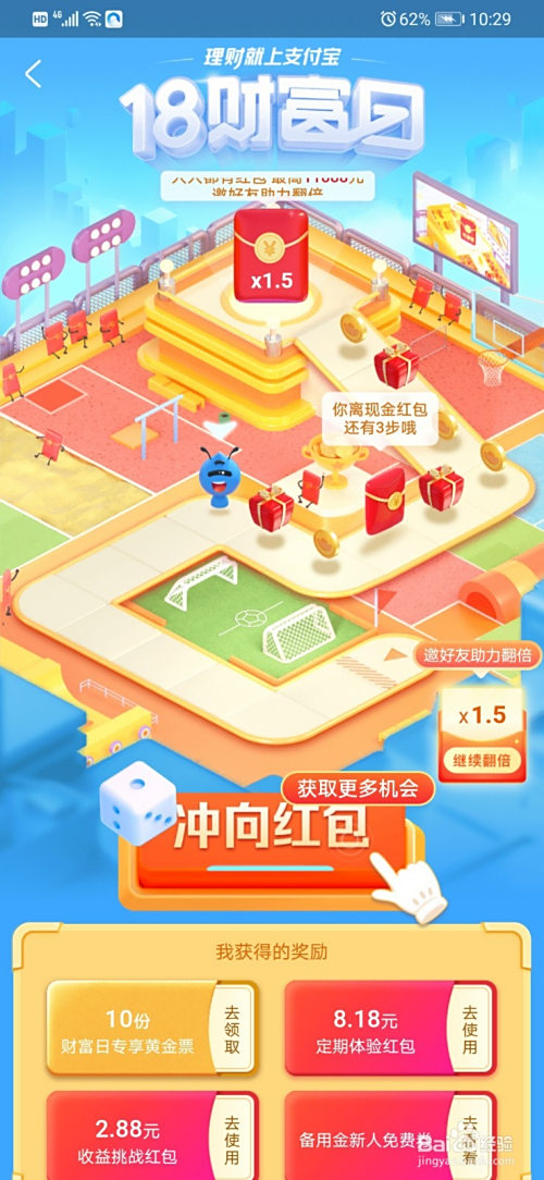 达到终点之后,我们就可以获得拿到的红包奖励了。