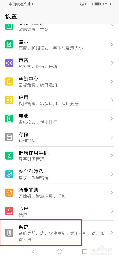 第一步打开华为手机,点击设置,选择系统,如下图所示: