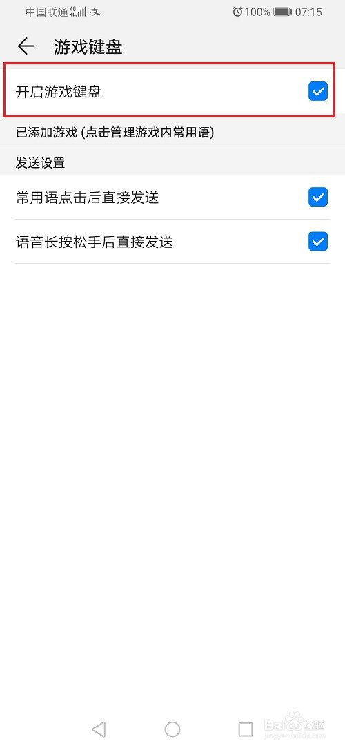 第五步进去游戏键盘界面,勾选开启游戏键盘,就当作功开启了,如下图所示: