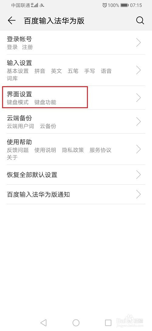 第三步进去百度输入法华为版之后,点击界面设置,如下图所示: