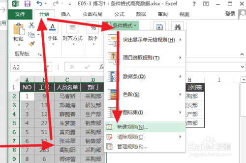 接下来我们选择表格变更内容区域,然后点击起头选项下的前提格局,选择新建法则。