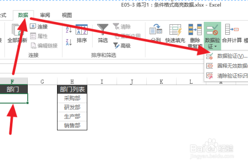 起首选择部分下的单位格,然后点击数据——数据验证。