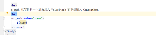 利用struts标签中的push标签,该标签近似于set标签,可是push标签是将把一个对象压入到ContextMap中。push标签一起头就把对象压入的ValueStack值栈中,标签竣事之后就把对象放出栈中