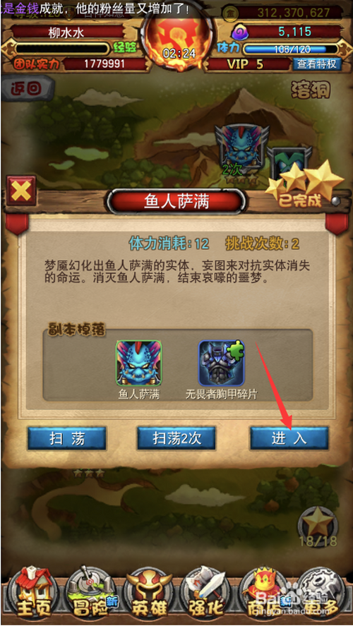 点击游戏本家儿菜单冒险,再点击子菜单副本按钮。