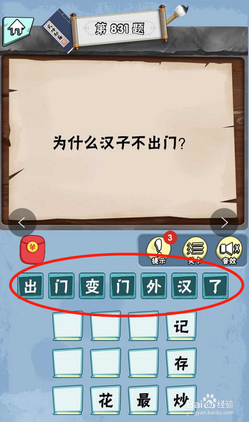 脑子急转弯达人游戏Lv6绝代奇才第831关内,提问为什么汉子不出门。