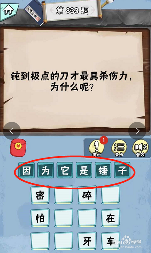 脑子急转弯达人游戏Lv6绝代奇才第833关内,提问钝到顶点的刀才具有杀伤力,为什么呢?
