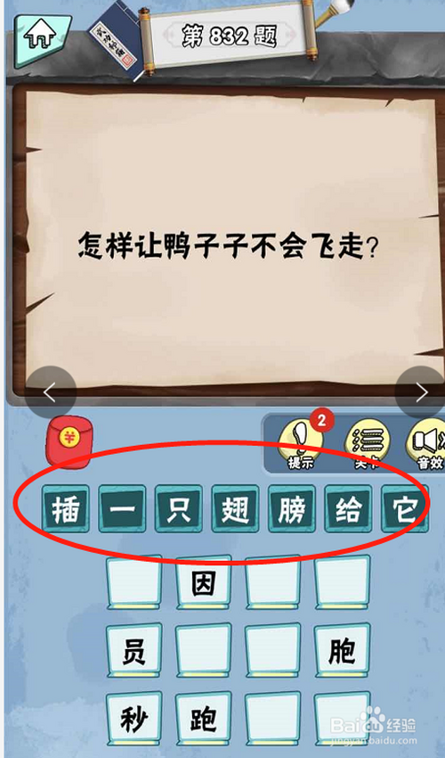 脑子急转弯达人游戏Lv6绝代奇才第832关内,提问如何让鸭子不会飞走。