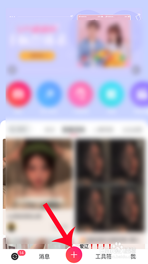 起首,点击打开手机桌面的“美图秀秀”,进入后选择加号进入。